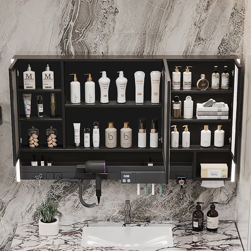 镜子收纳柜洗手台风筒牙刷置物架定 浴室镜柜多功能卫生间p挂墙式