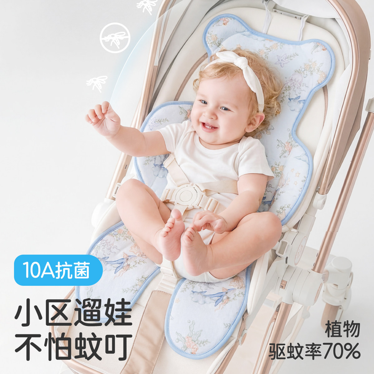 丸丫T6 坐垫婴儿推车通用凉席 playkids系列遛娃神器凉席垫子夏季
