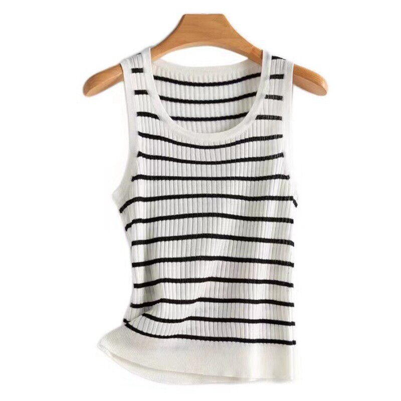 SLY条纹背心女夏外穿冰丝针织宽肩吊带内搭显瘦U领简约气质 EGG