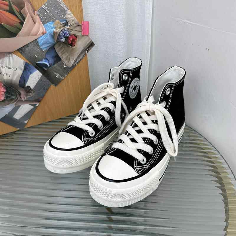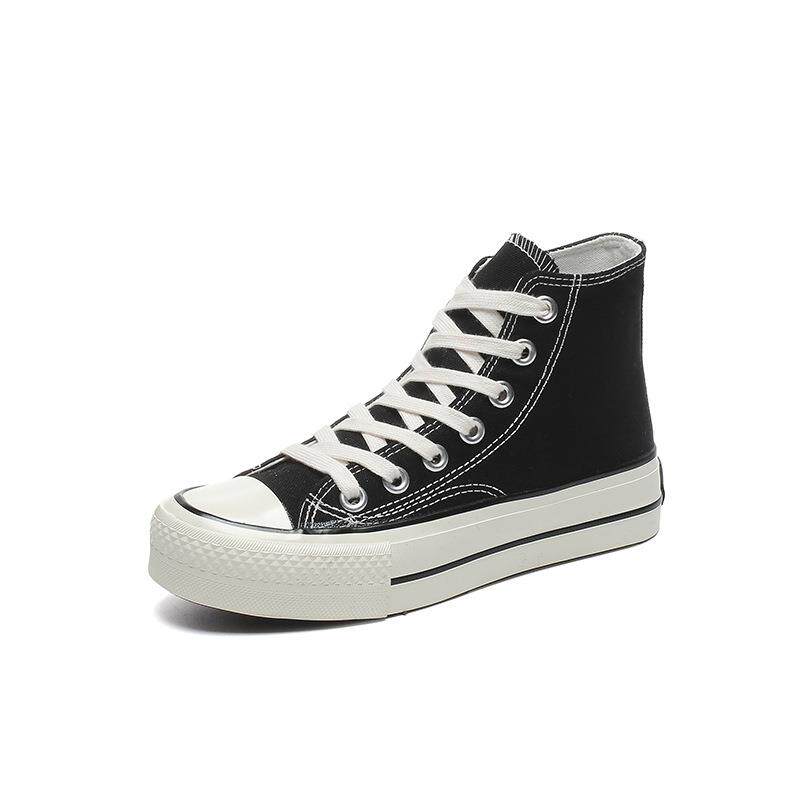 新款 女2024秋季 黑色高帮帆布鞋 ins潮 女鞋 高街板鞋 爆款 七七主人家