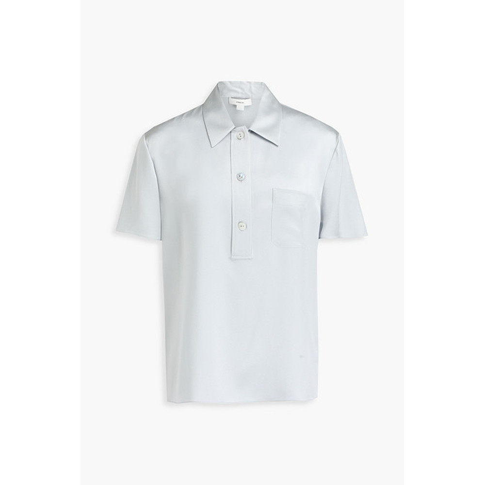 真丝缎Polo衫 1h可退 香港直邮VINCE 女士 grey灰色 V026212970