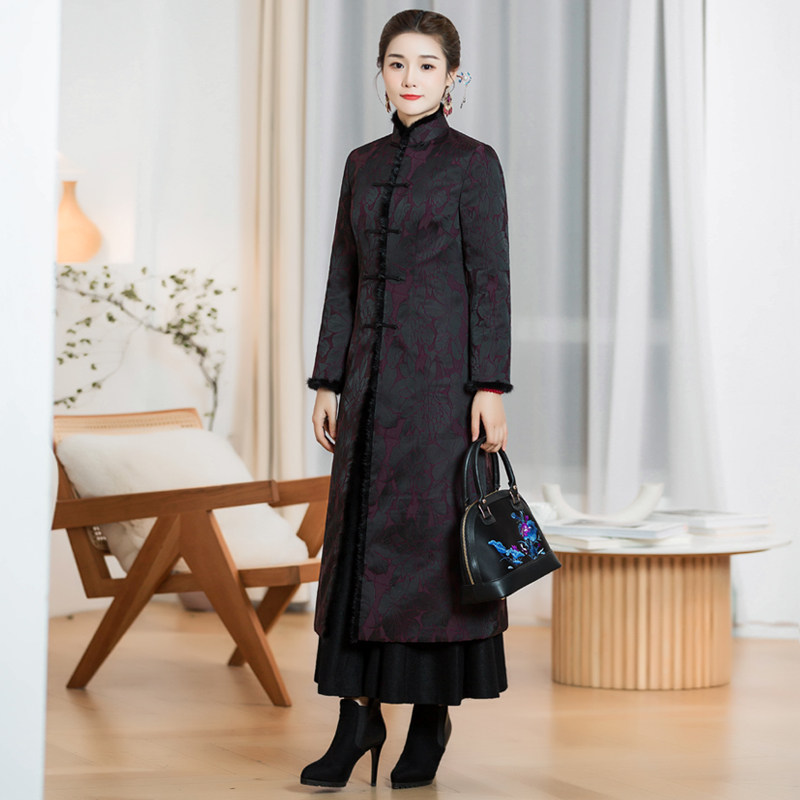 显瘦唐装 华族经典 外套 夹棉加厚修身 新款 旗袍风衣中长款 2021年冬季