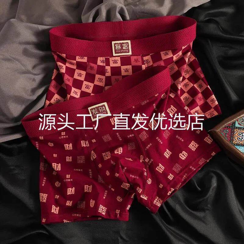 GHW臻选拍一发三10A抑菌吉言酒红色男内裤 四角 纯棉马年喜庆大尺码由