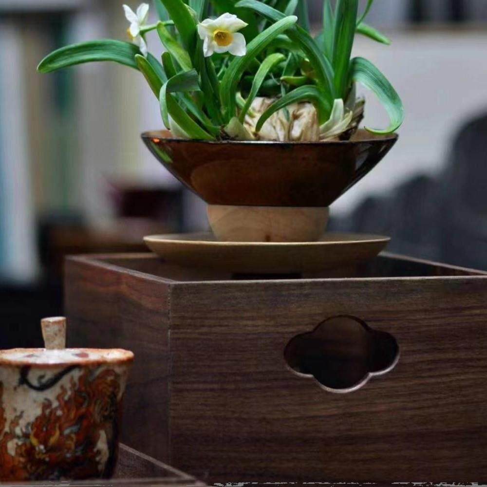 北美黑胡桃木实木茶几收纳盒首饰储物盒茶具杯子置物盒收纳展示柜由