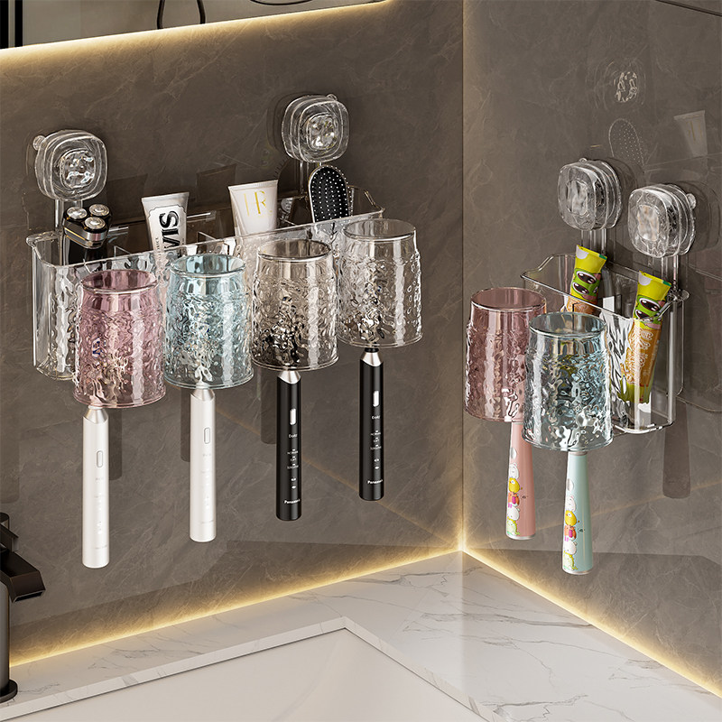 免打孔卫生间漱口杯刷牙杯家庭牙膏牙刷架子 吸盘牙刷置物架壁挂式