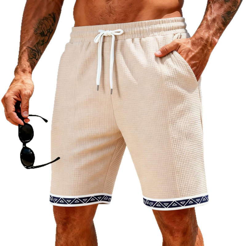 男装 men man 短裤 日常休闲透气拼接华夫格沙滩裤 shorts欧美新款由