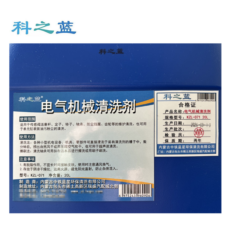 为您提供商品071 科之蓝 电气机械清洗剂 KZL 桶 20L的详细介绍,