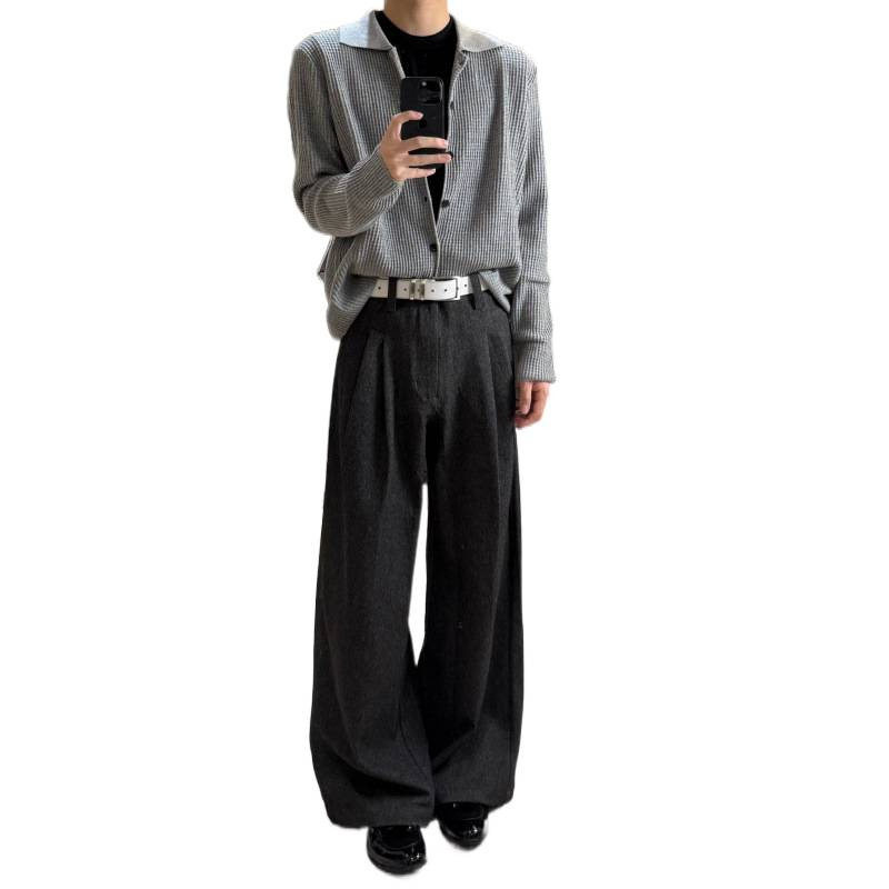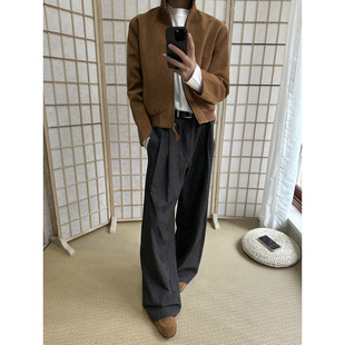 型直筒阔腿双褶Cleanfit休闲西裤 花纱TR A字版 男跨境大码 长裤