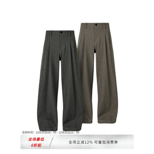 ELI 春夏松紧腰单褶复古通勤免烫垂感休闲裤 直筒西裤 耶加雪菲