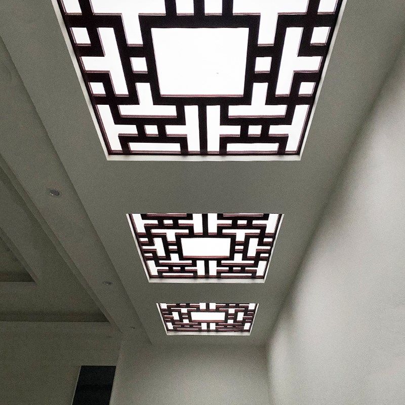 新中式 饰板木窗花隔断 吊顶格栅板pvc镂空雕花板走廊通花板天花装