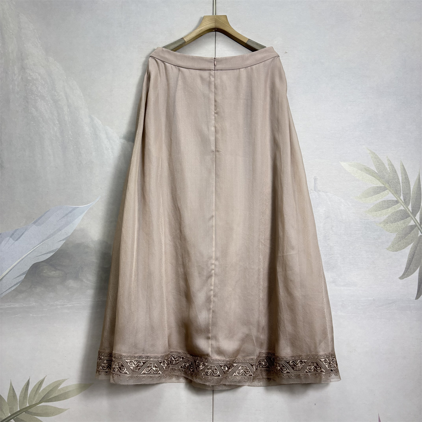 文艺气质新中式 汉服a字裙长裙 双层仿棉麻半身裙春秋女中长款 1725