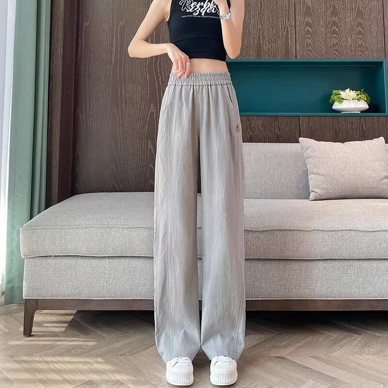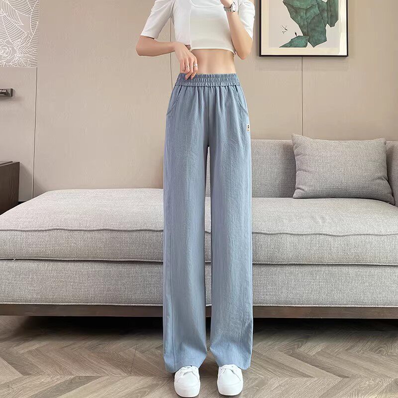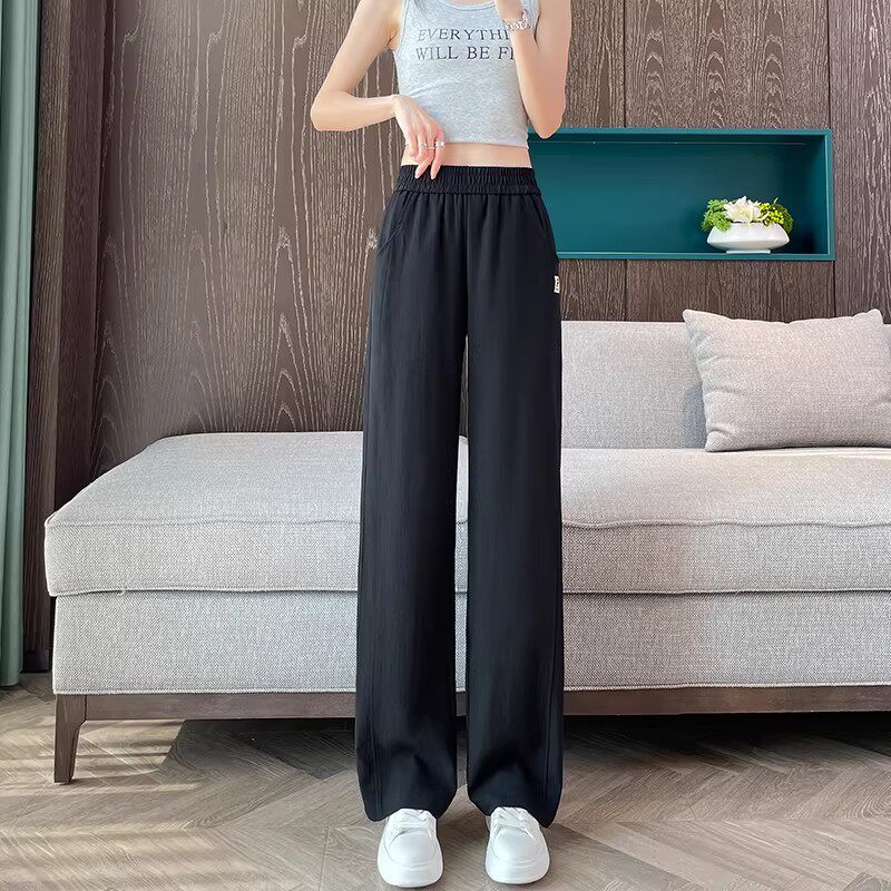子宽松直筒裤 清仓捡漏冰丝阔腿裤 黑色裤 2026新款 女夏季 亚麻休闲裤