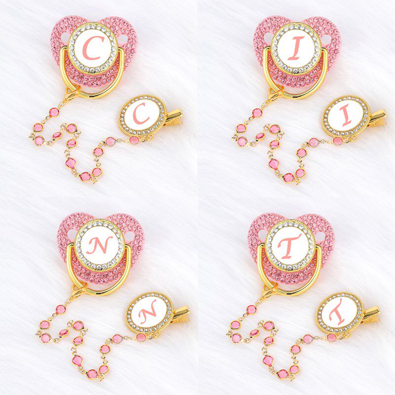 Pink Clip Newborn Per Pacifier Letters Baby Luxury Zircon由