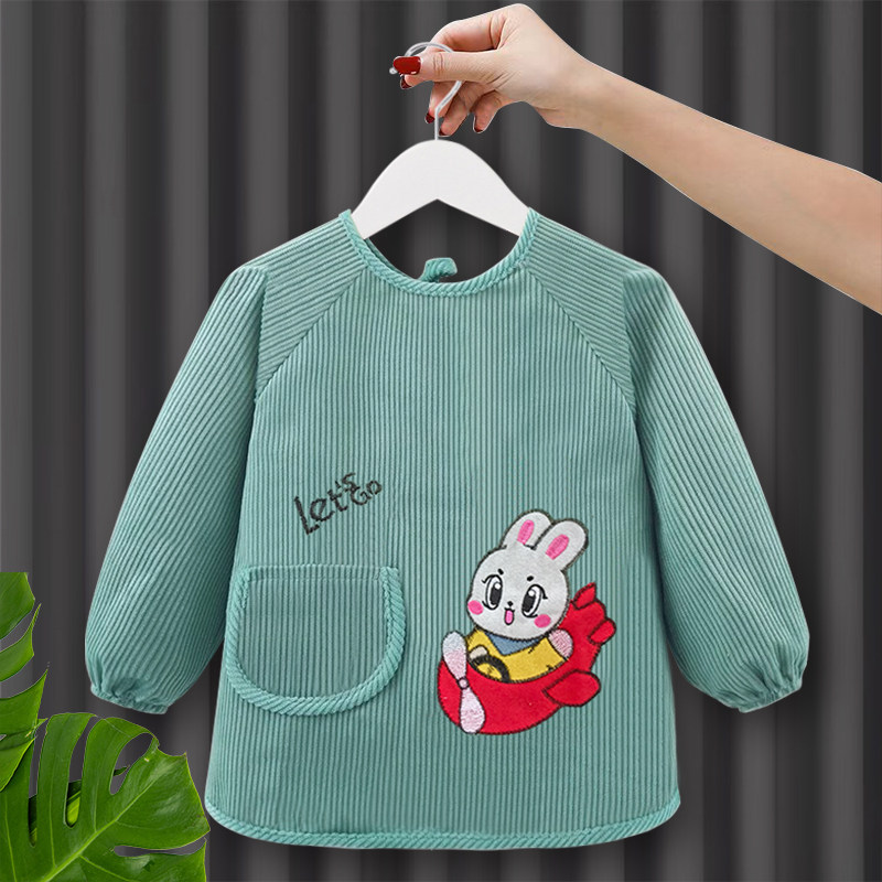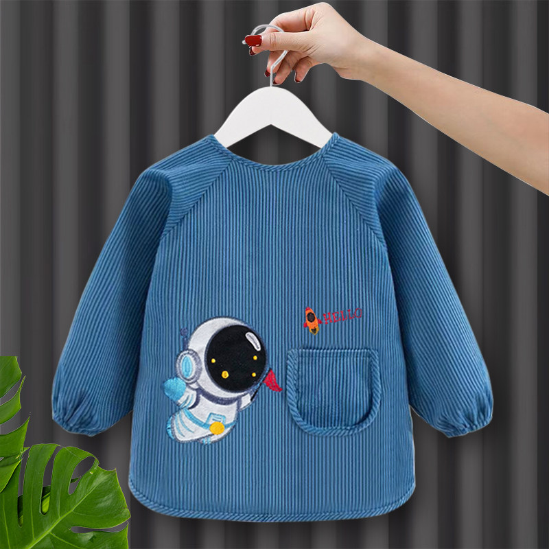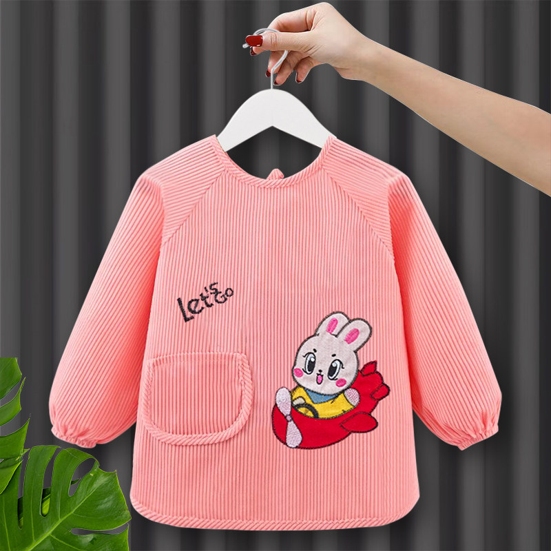 反穿衣防水防脏外穿护衣幼儿园吃饭围兜 儿童罩衣灯芯绒秋冬长袖