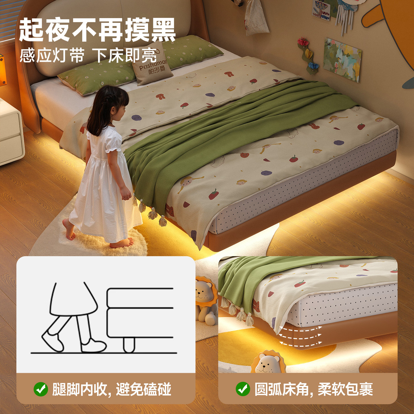 帕沙曼 女孩儿家用真皮悬浮床护童儿童房家具 儿童床男孩2026新款由