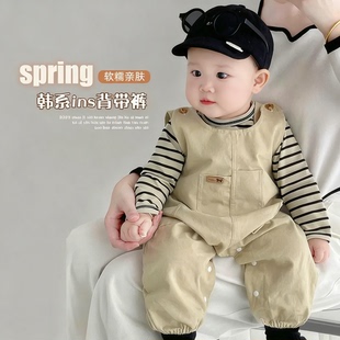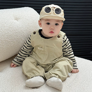 婴儿衣服春秋装 外出服洋气连体衣男女宝宝秋季 两件套装 条纹背带裤