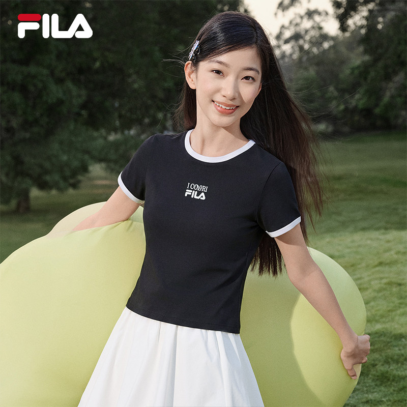 FILA斐乐短袖 修身 短款 螺纹运动百搭复古撞色上衣 T恤女2026夏新款由