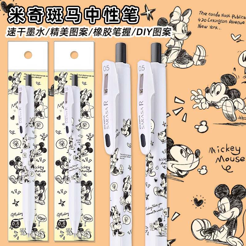 日本ZEBRA斑马JJ15米奇米妮迪士尼diy限定水笔可爱高颜值学生用刷题按动黑色笔官方旗舰店官网 新品