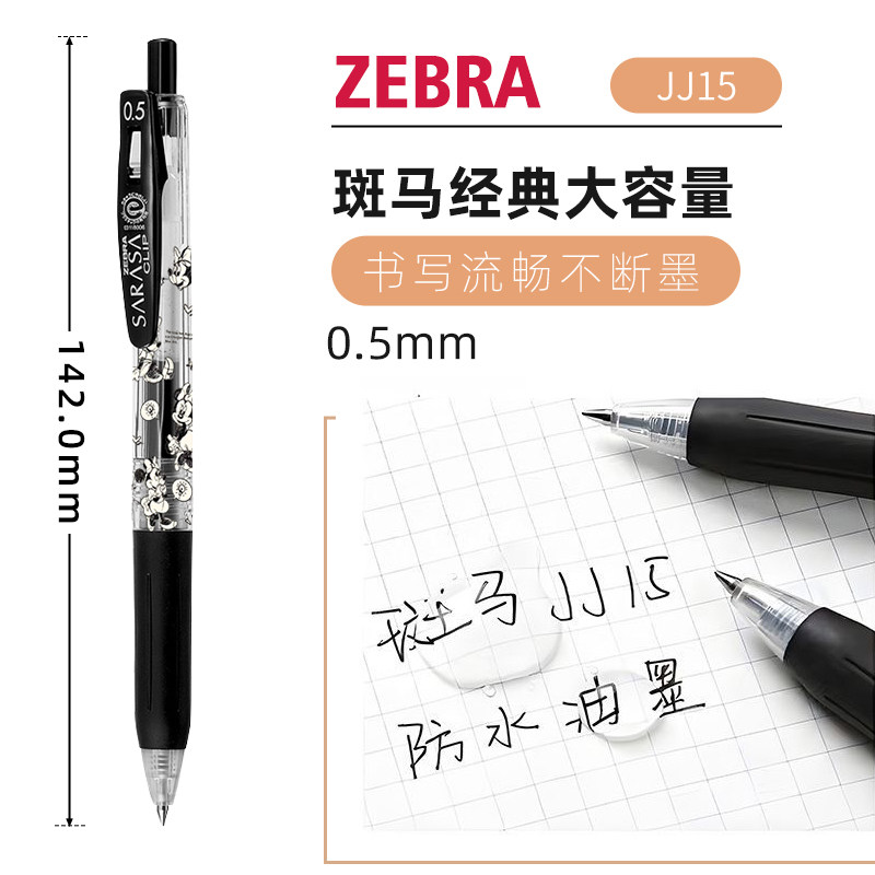日本ZEBRA斑马JJ15米奇米妮迪士尼diy限定水笔可爱高颜值学生用刷题按动黑色笔官方旗舰店官网 新品由
