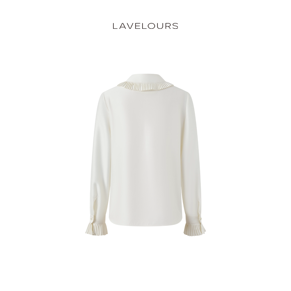 LAVELOURS 气质娃娃领荷叶边桑蚕丝羊毛长袖 衬衫 新款由
