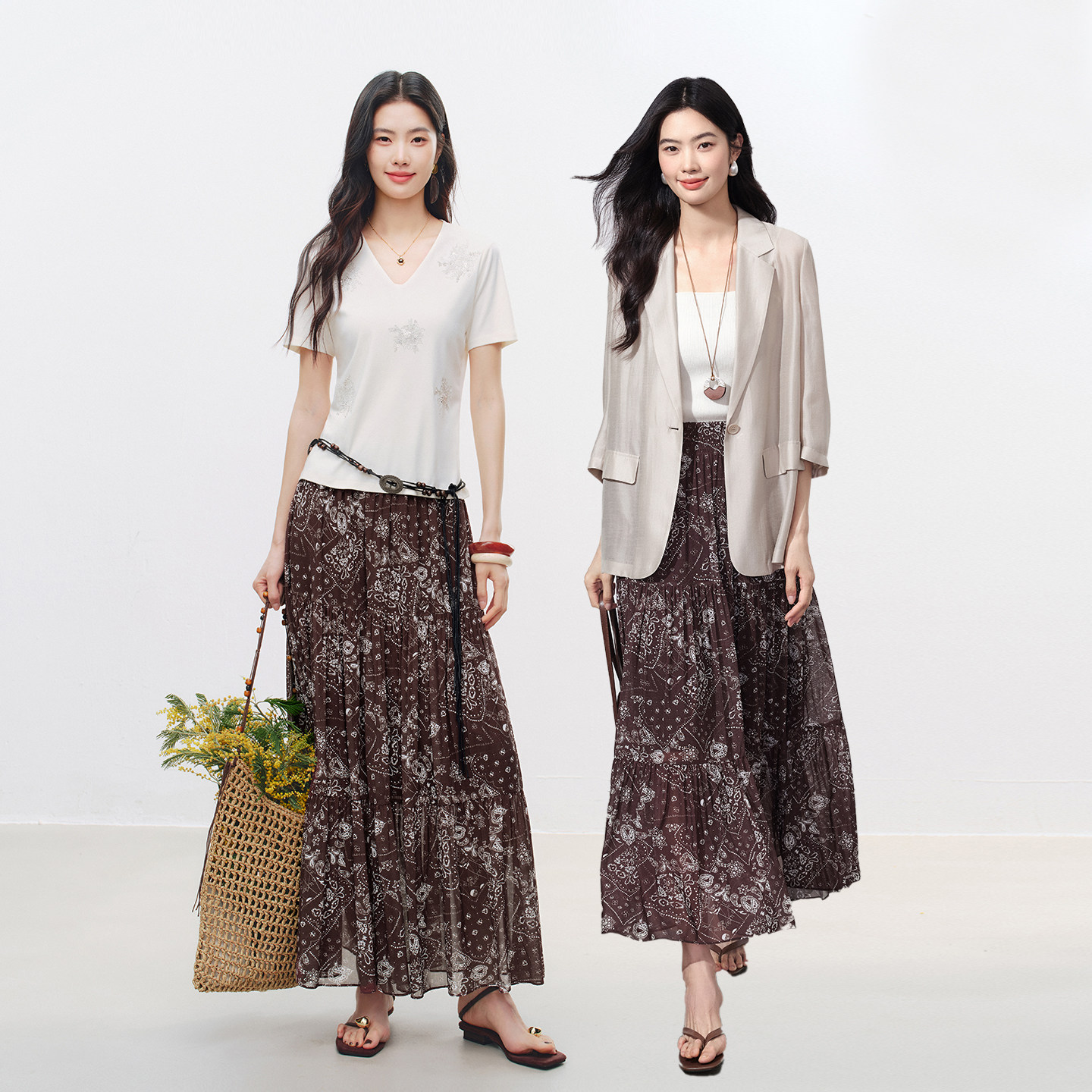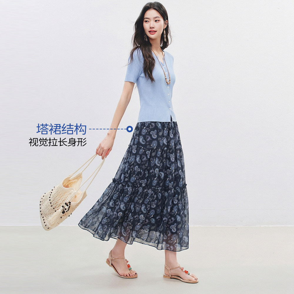 衣香丽影半身裙女2026年春装 复古腰果花气质垂顺碎花雪纺长裙 新款