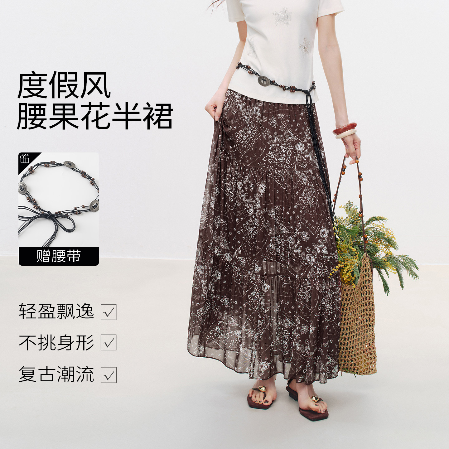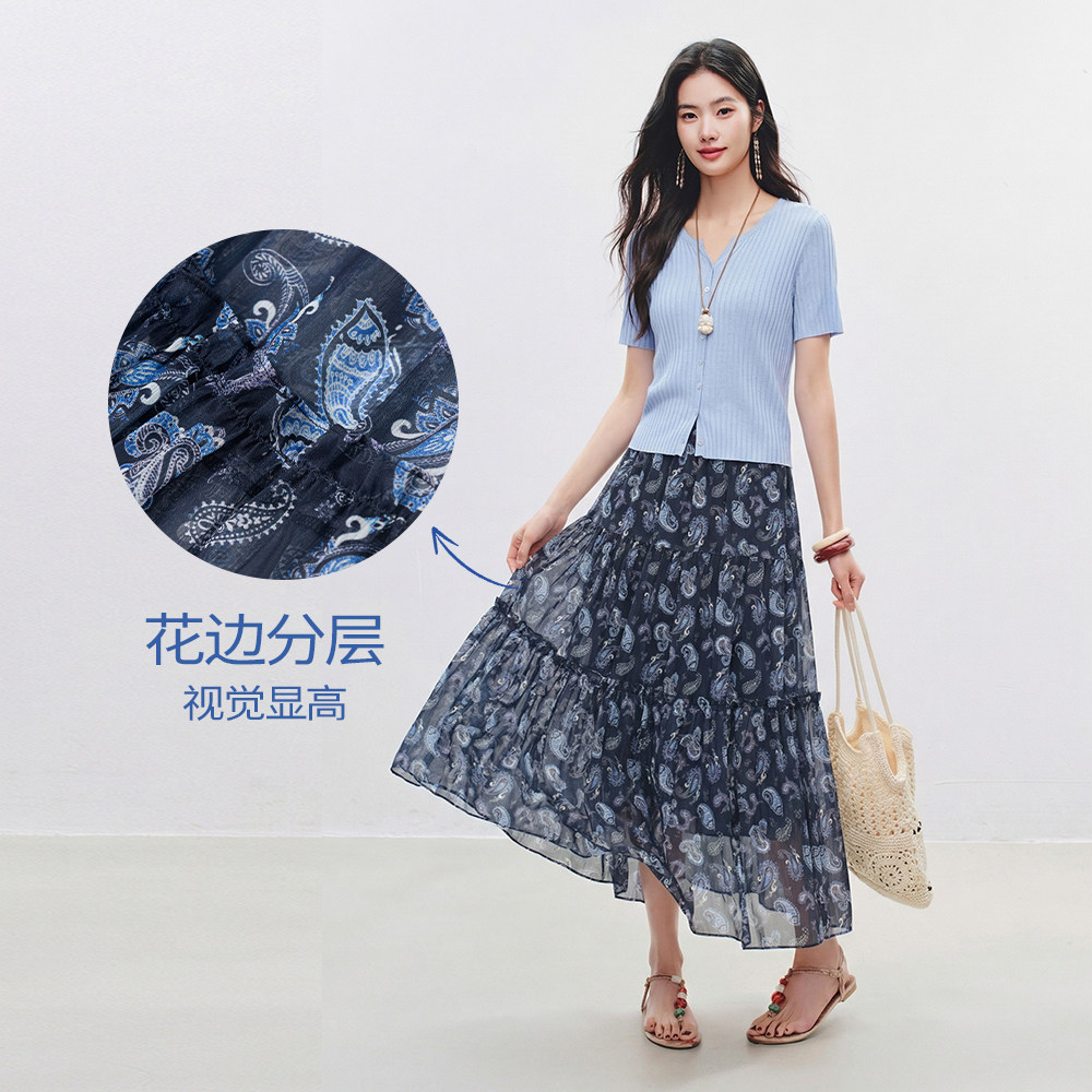 为您提供商品衣香丽影半身裙女2026年春装 复古腰果花气质垂顺碎花雪纺长裙 新款的详细介绍,