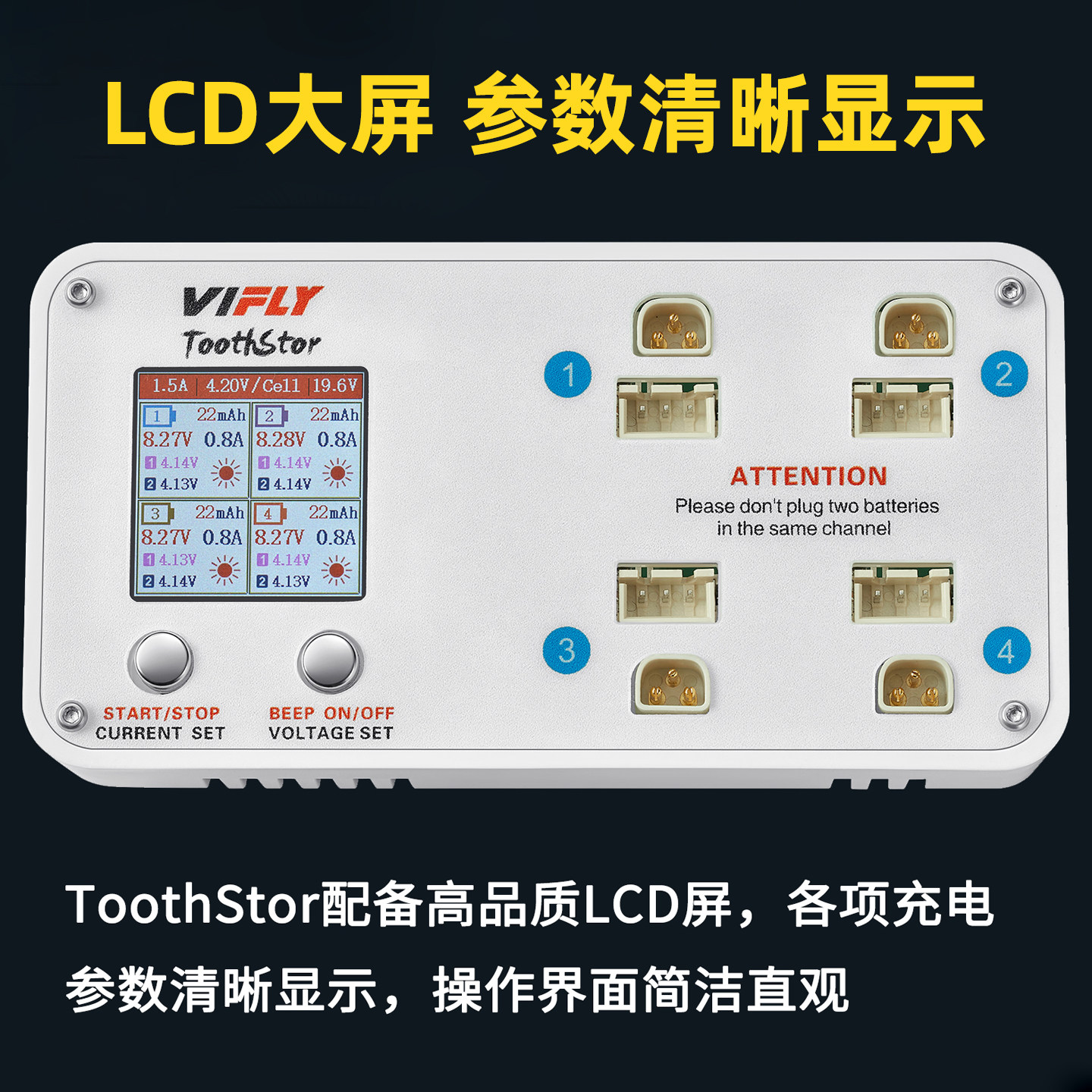 为您提供商品Toothstor平衡充电器4路2S电池FPV穿越机支持BT3.0和XH2.54 Vifly的详细介绍,
