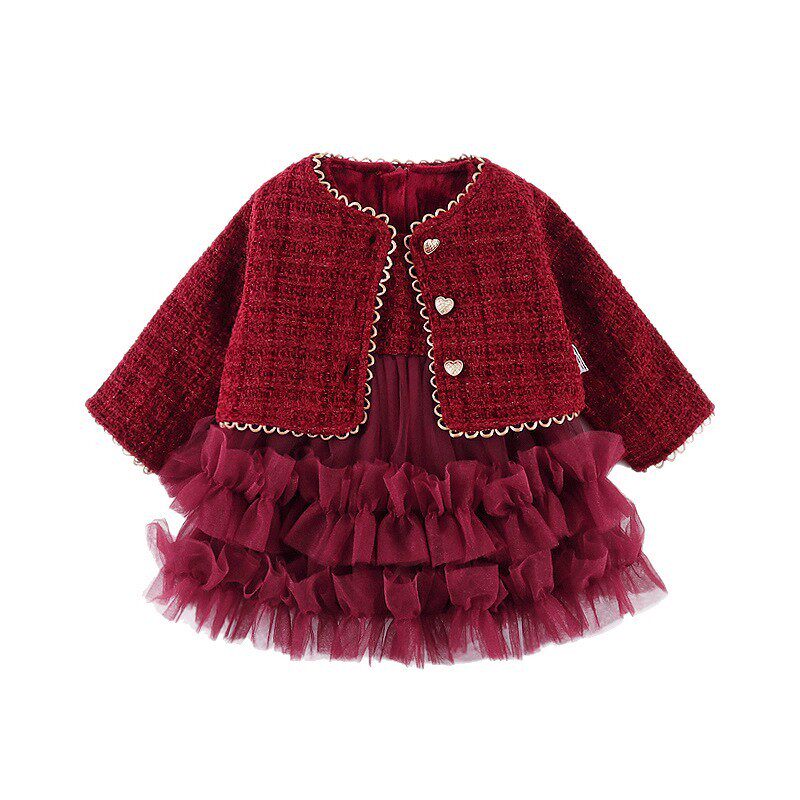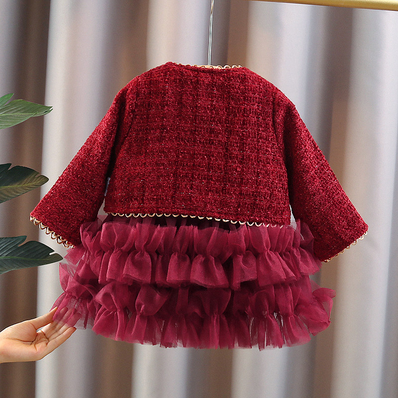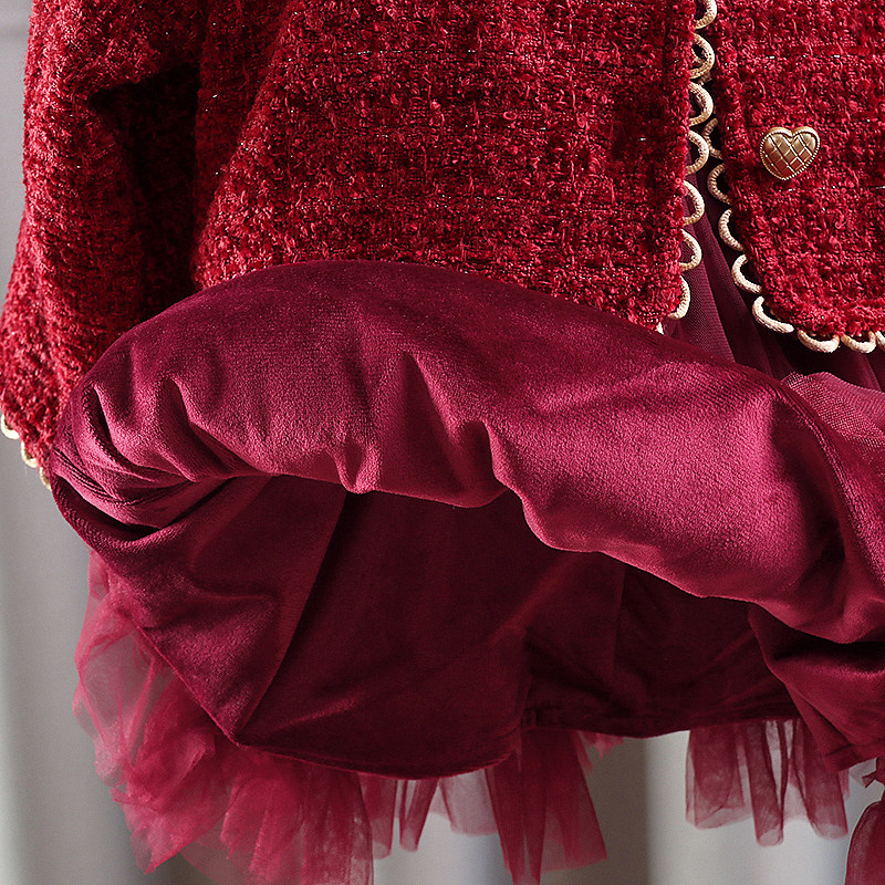 冬季 儿童女宝宝小香风蓬蓬纱公主裙子两件套加绒 女童裙套装 潮童装由