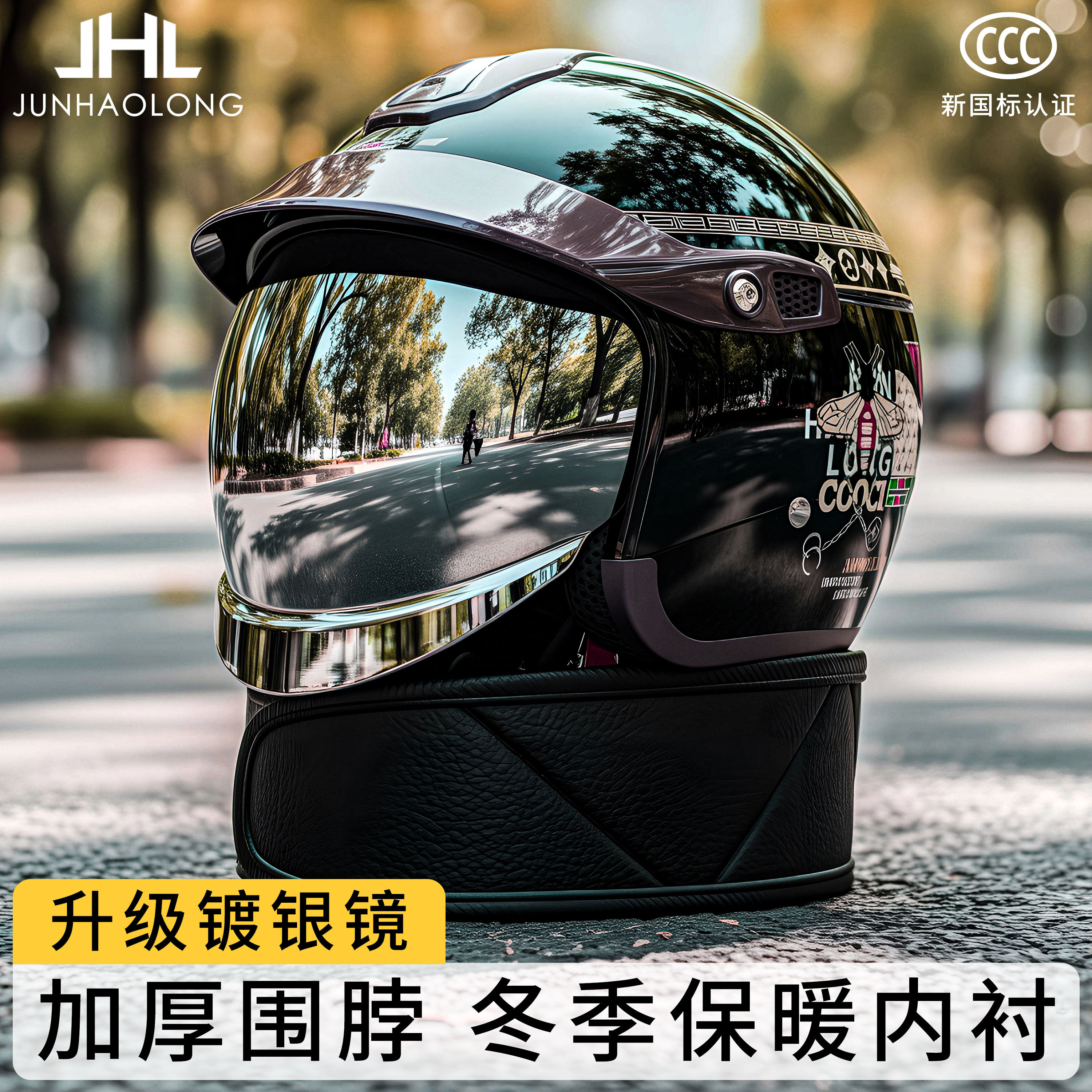 通用内推式 电镀银防晒镜片摩托车安全帽 3c认证四季 电动车头盔男款由