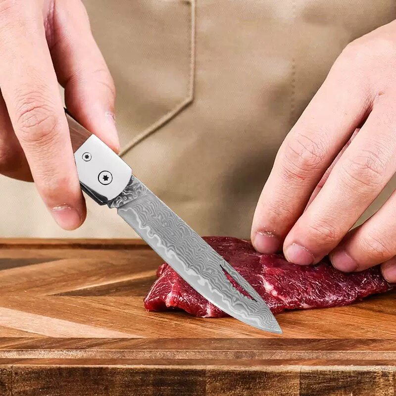 为您提供商品大马士革钢折叠多用小刀手把吃肉刀水果刀锋利牛羊肉削果皮刀防身的详细介绍,