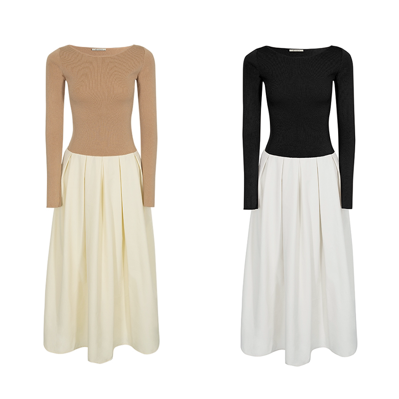 AEL原创设计感小众拼色裙子2025秋季 女装 收腰显瘦长袖 连衣裙 新款