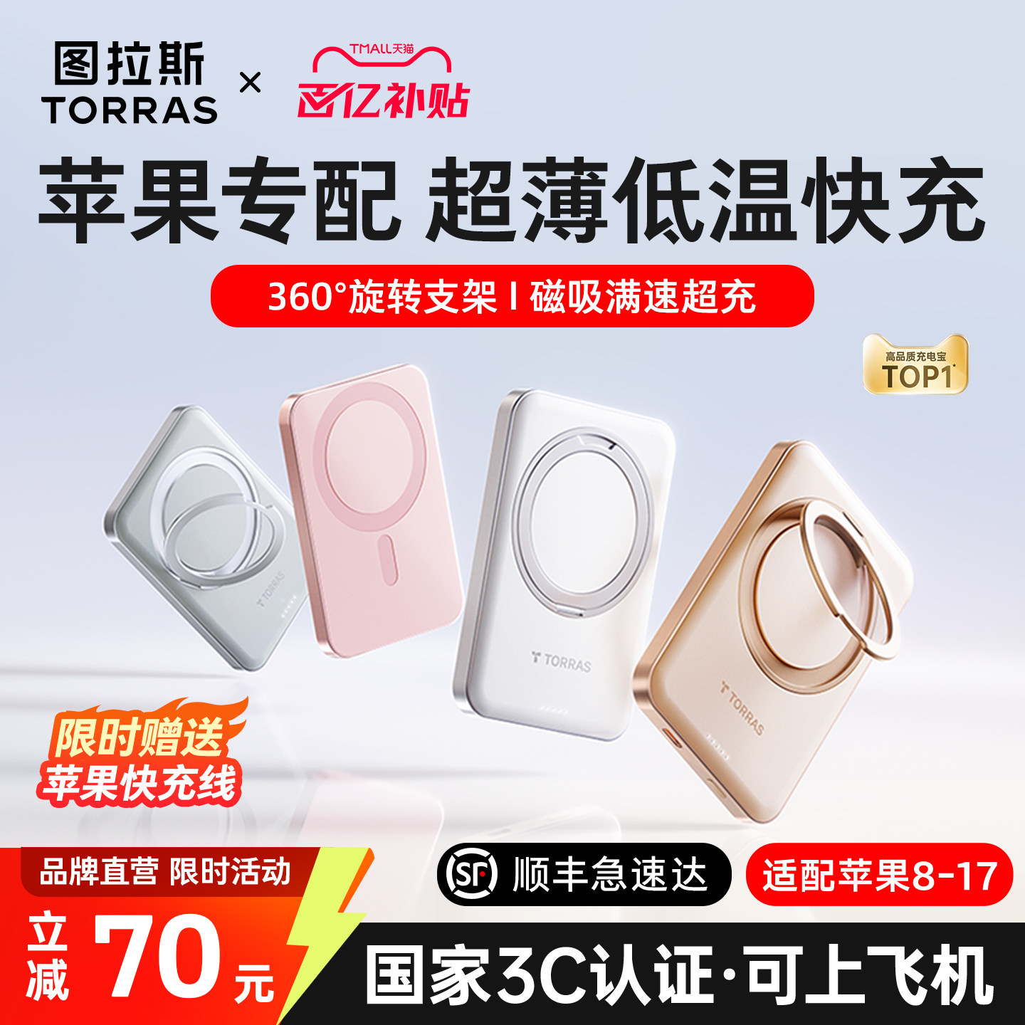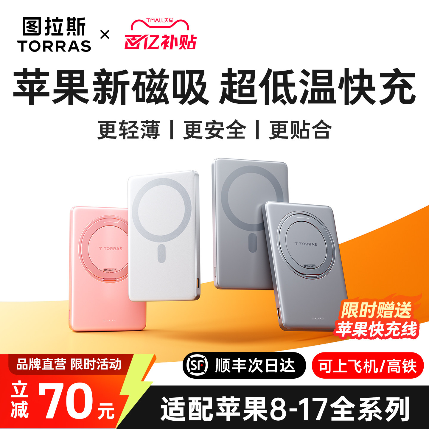 图拉斯磁吸充电宝2026新款 小米 小冰片适用苹果17无线超薄便携3C认证可上飞机快充大容量专用移动电源官方正品