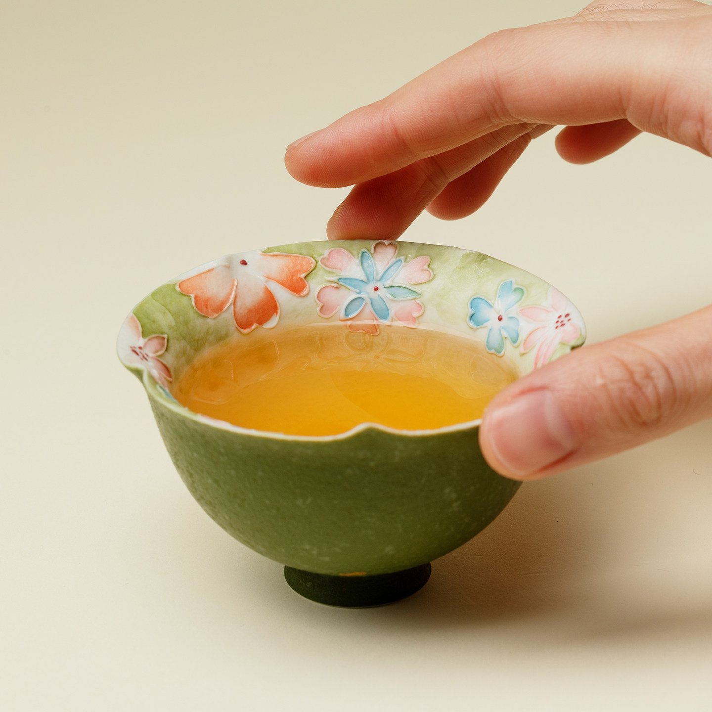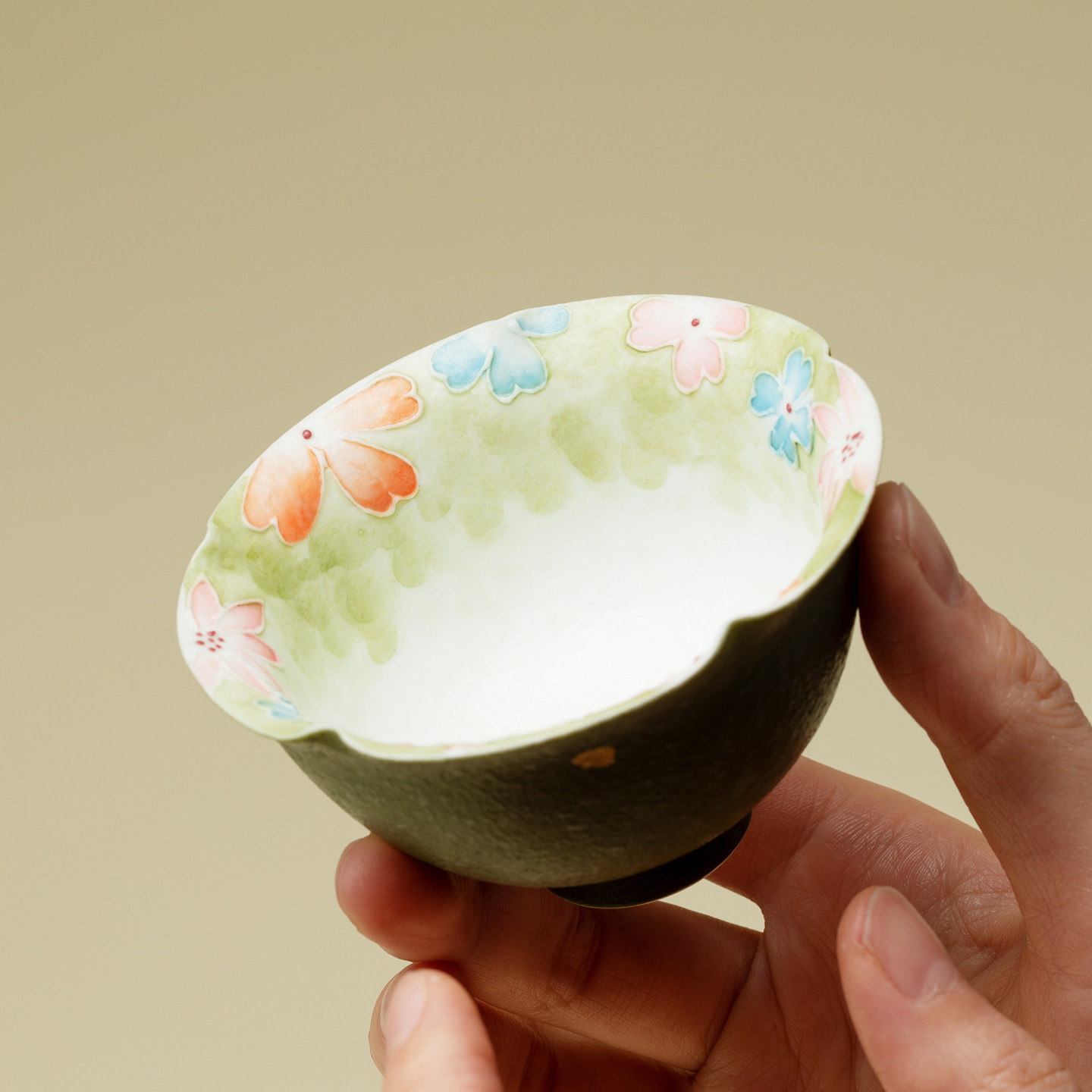 梵汝手绘花屿花口主人杯创意手工陶瓷茶盏茶杯中国传统色绿色茶具由