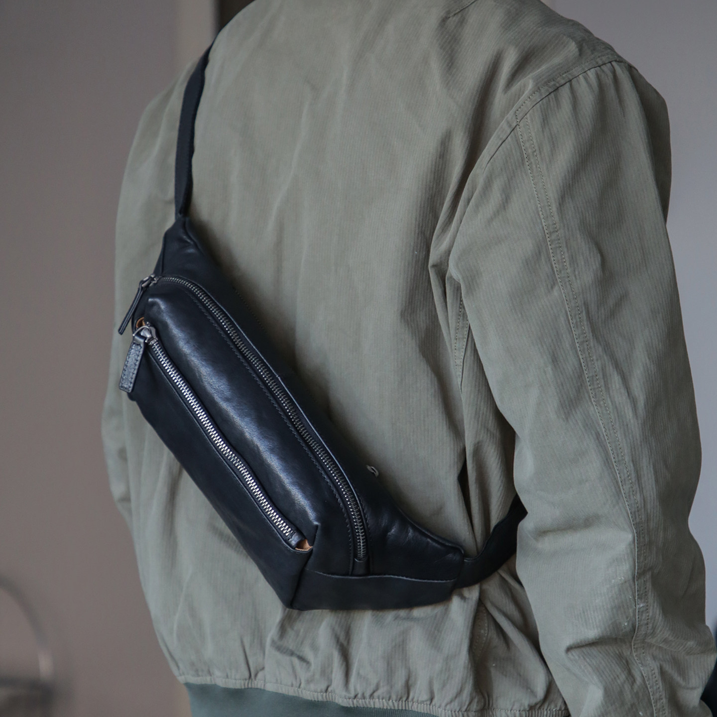 2025新款 植鞣头层牛皮斜挎包休闲骑行简约小背包 古造真皮胸包男士由