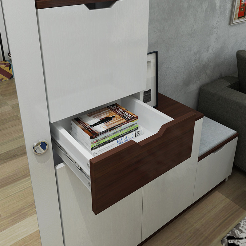 客厅家用多功能带换鞋 凳玄关隔断柜 柜衣帽柜一体 门口带镜子鞋