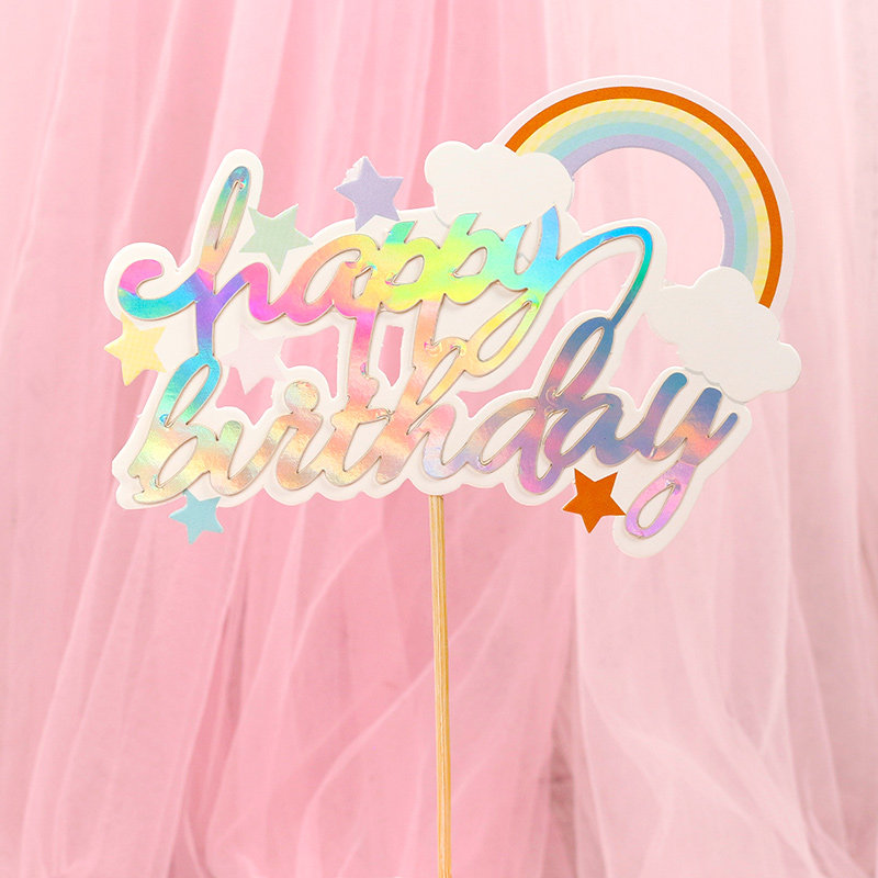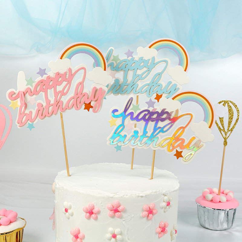 烘焙蛋糕装 饰插签 饰插旗气球星星毛球云朵彩虹插牌生日插件甜品装由
