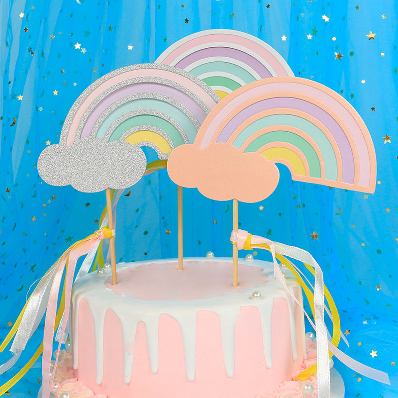 烘焙蛋糕装 饰插签 饰插旗气球星星毛球云朵彩虹插牌生日插件甜品装