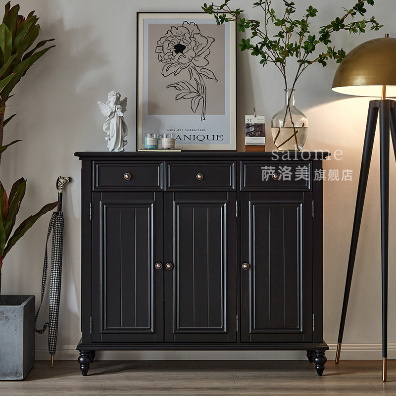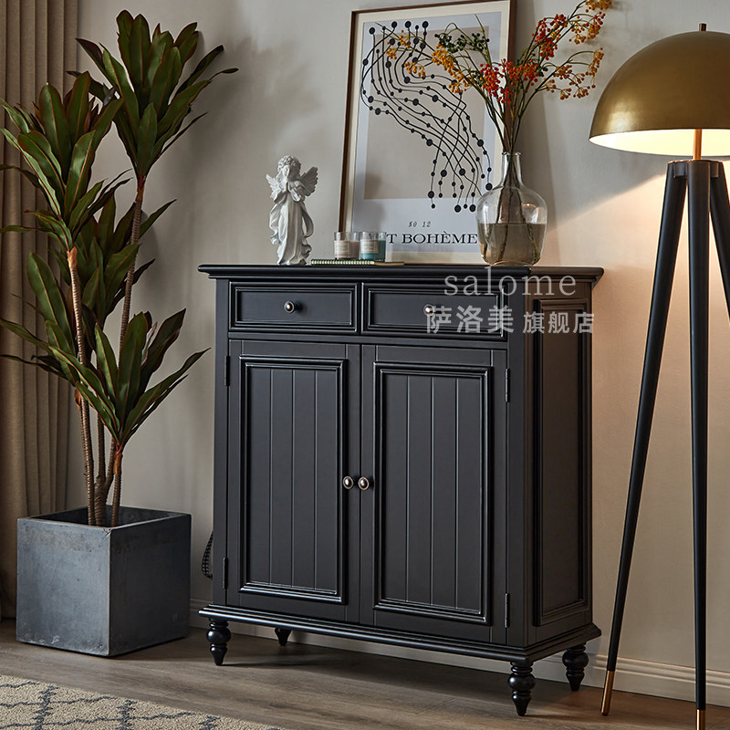 柜实木黑白色轻奢两三门超薄玄关客厅家用门口鞋 架 乡村鞋 萨洛美式由