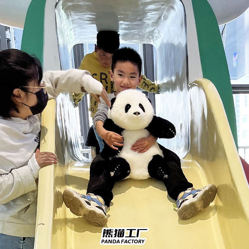 现货5月龄花花熊猫工厂旗舰店5月龄和花花仿真熊猫礼物真羊皮一体由