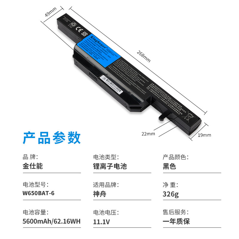 为您提供商品适用神舟战神K640E 笔记本电池 W650BAT K750D K670D K680E的详细介绍,