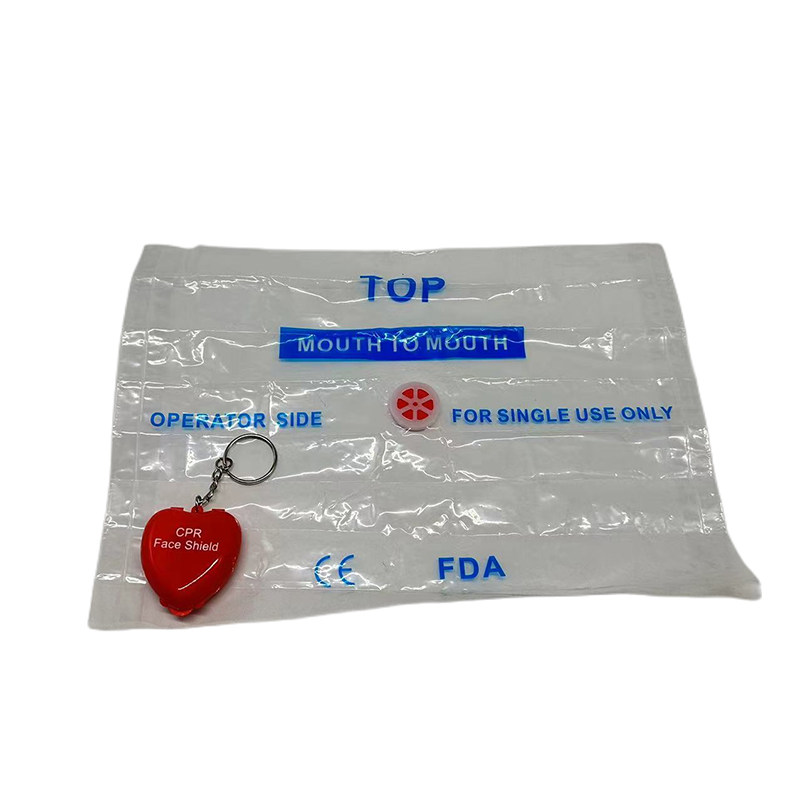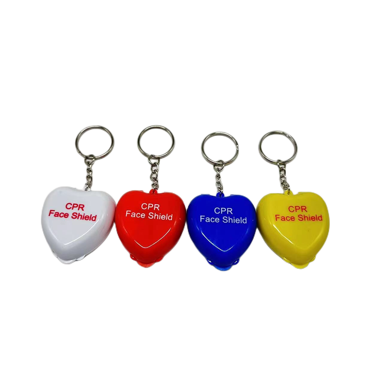 便携一次性单向阀PVC口对口人工呼吸膜面罩心形钥匙扣CPR呼吸面罩