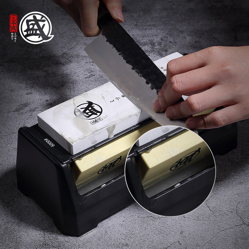 400目1000目特大号磨刀石家用双面白刚玉油石架子底座菜刀磨刀器