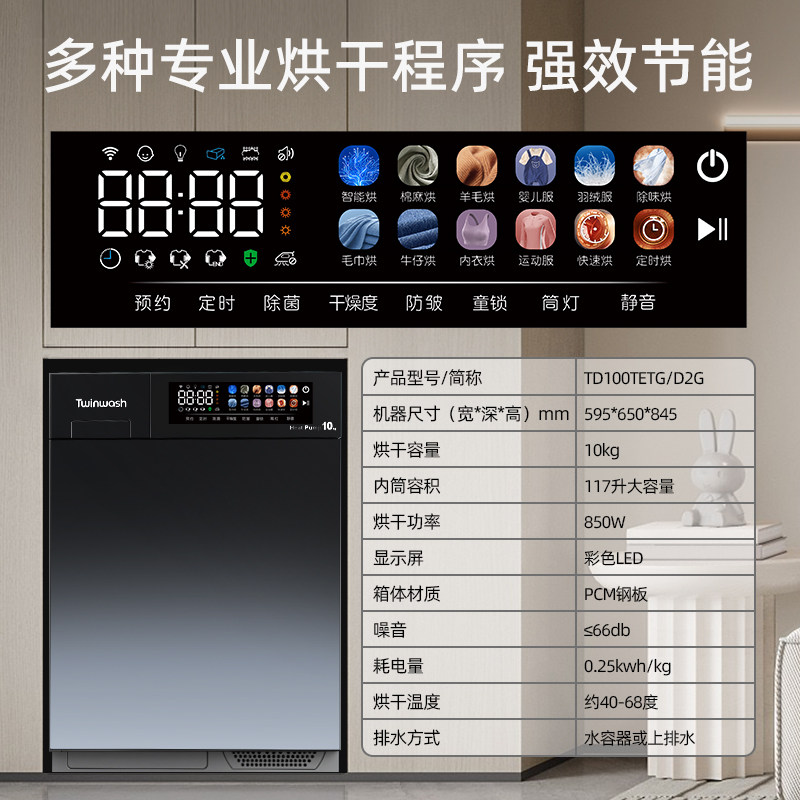 全自动家用干衣机除菌除味D2G Twinwash町渥10kg羊毛烘干机热泵式由