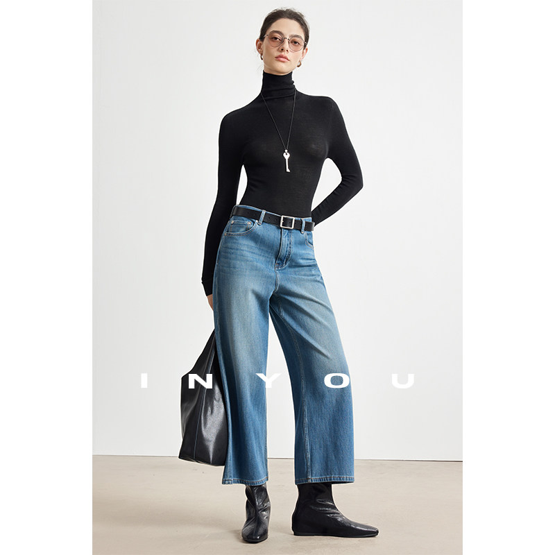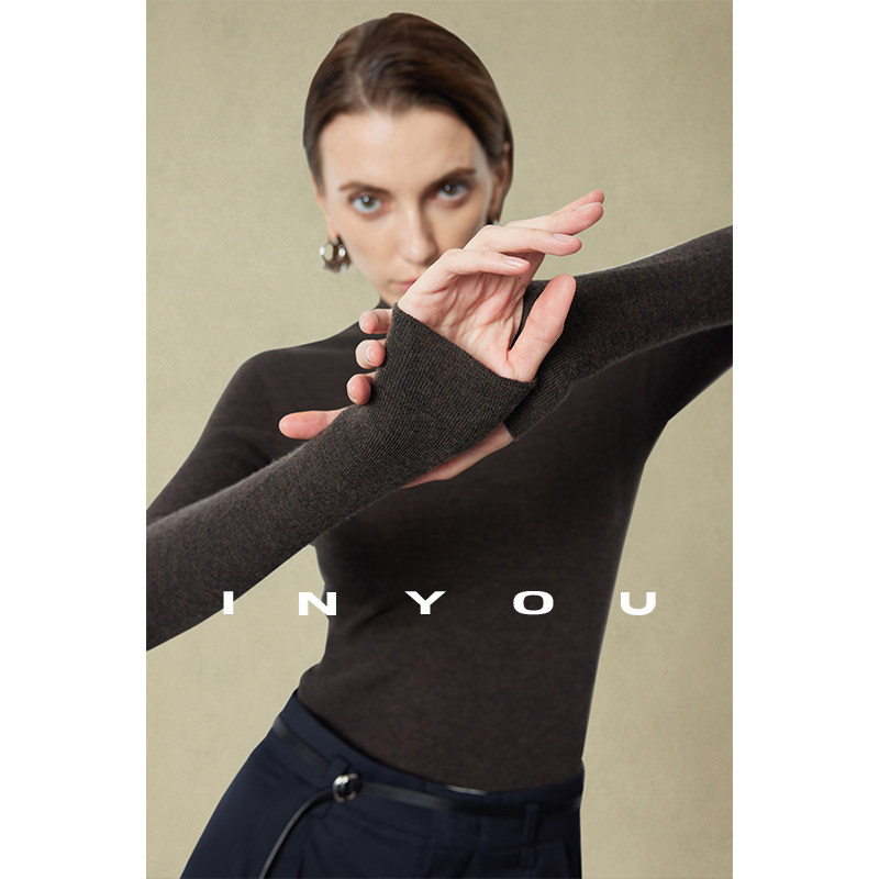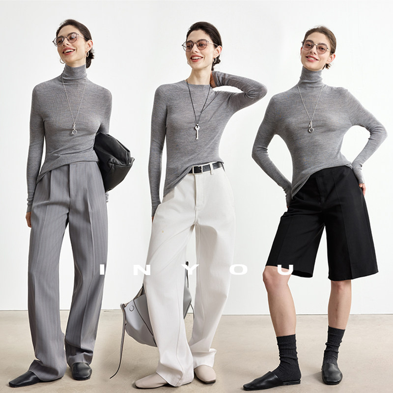 因由 显瘦套头针织衫 无缝一体半高领美丽诺羊毛秋冬打底衫 女 修身