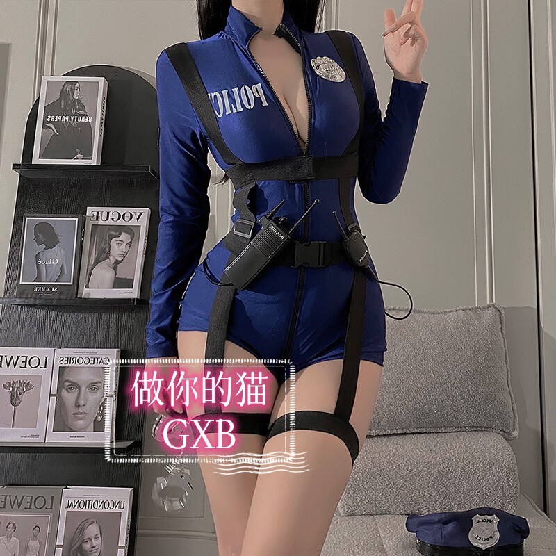 制服角色扮演拉链开档免脱纯欲欧美风夜场 女警cosplay服性感大码由