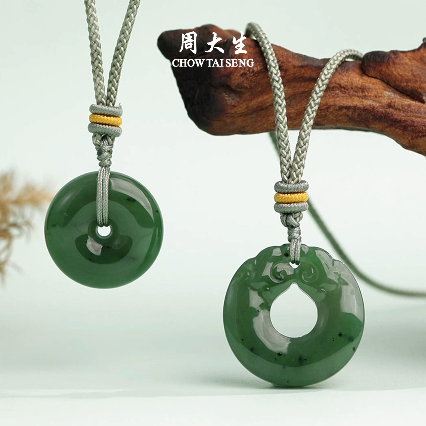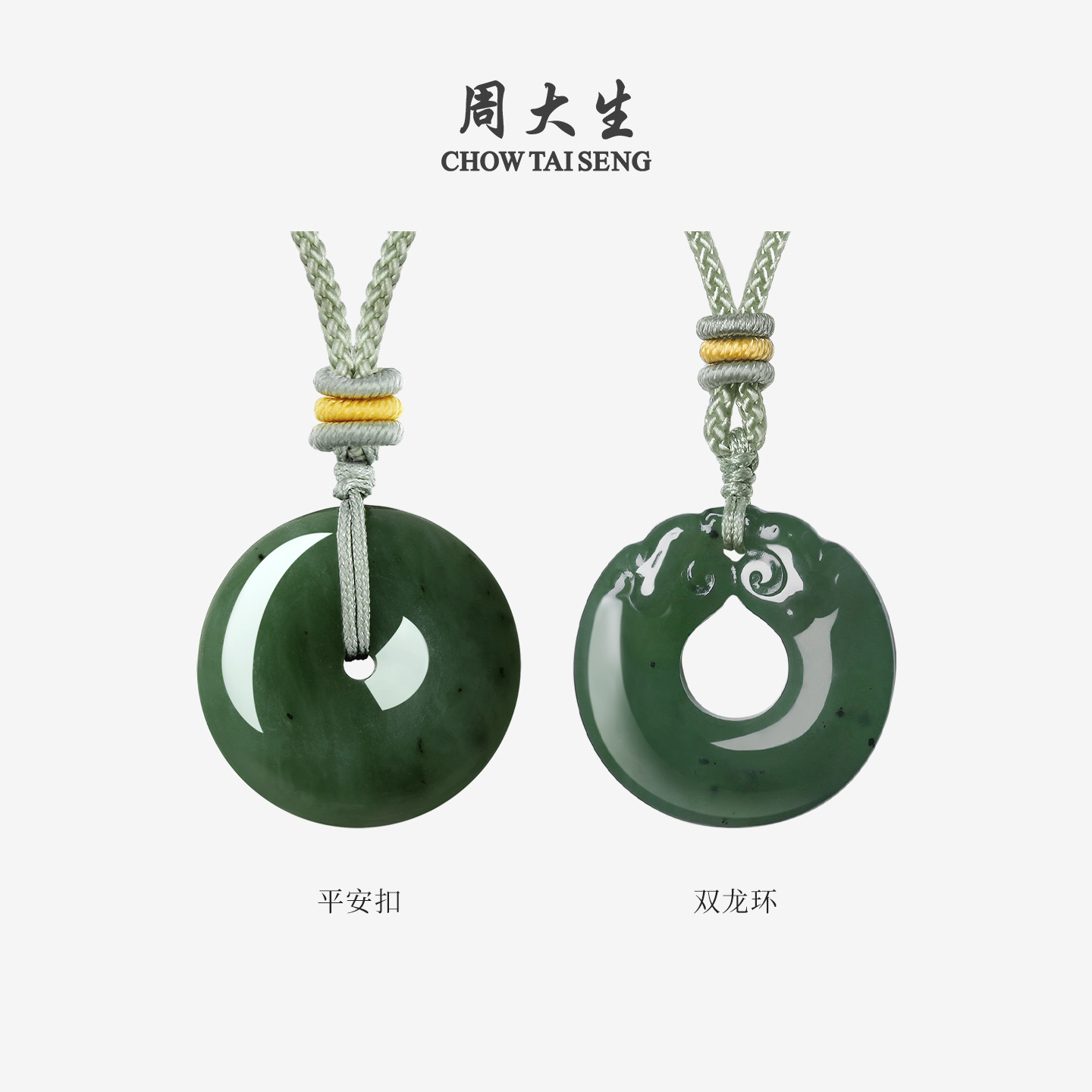 为您提供商品周大生和田碧玉平安扣吊坠玉石双龙环配绳挂坠项链送女友新年礼物的详细介绍,
