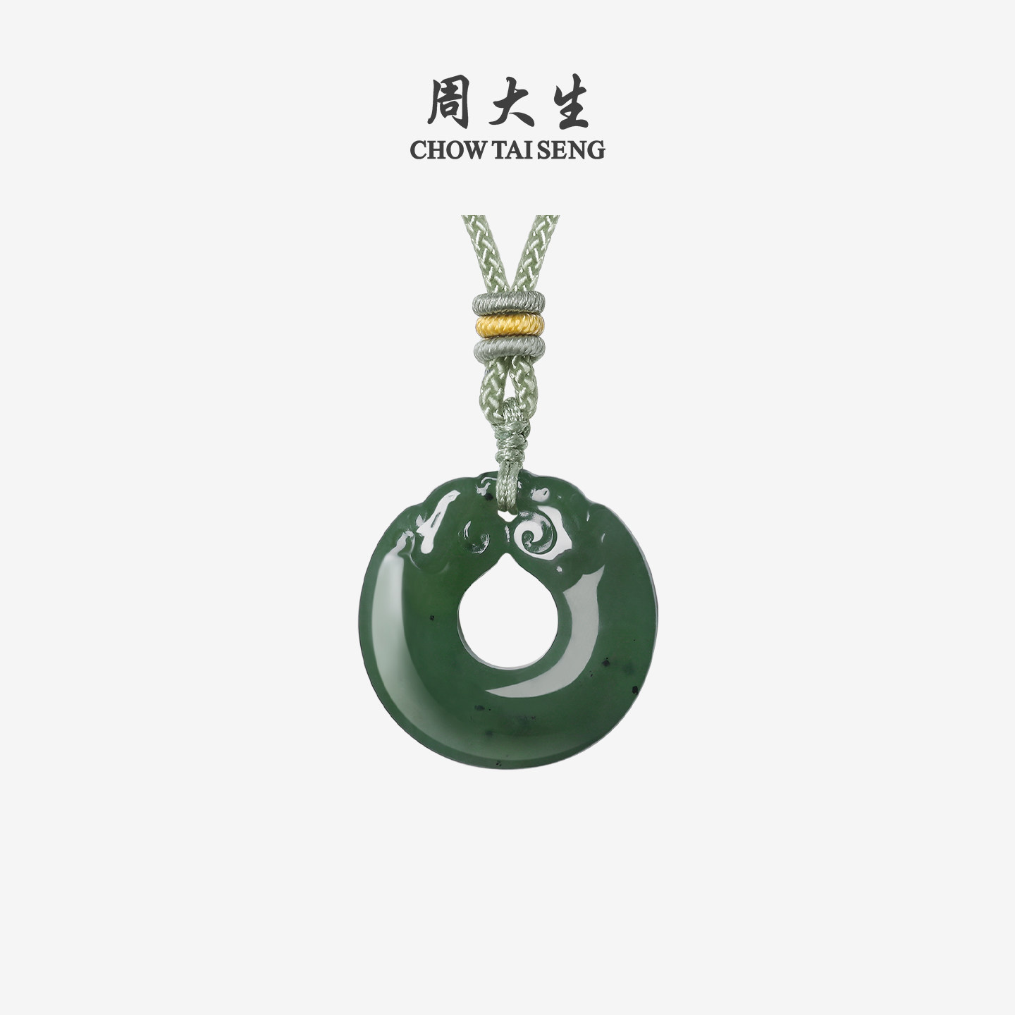 周大生和田碧玉平安扣吊坠玉石双龙环配绳挂坠项链送女友新年礼物