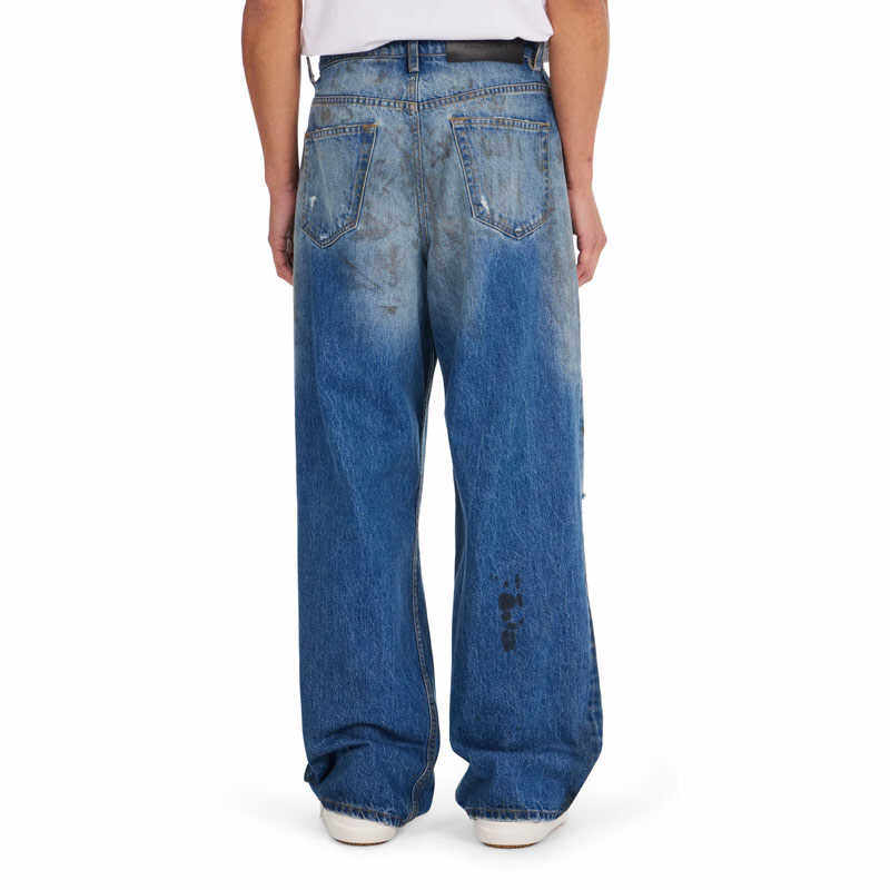阔腿休闲长裤 潮牌男美式 MADWITCH复古水洗cleanfit蓝色直筒牛仔裤