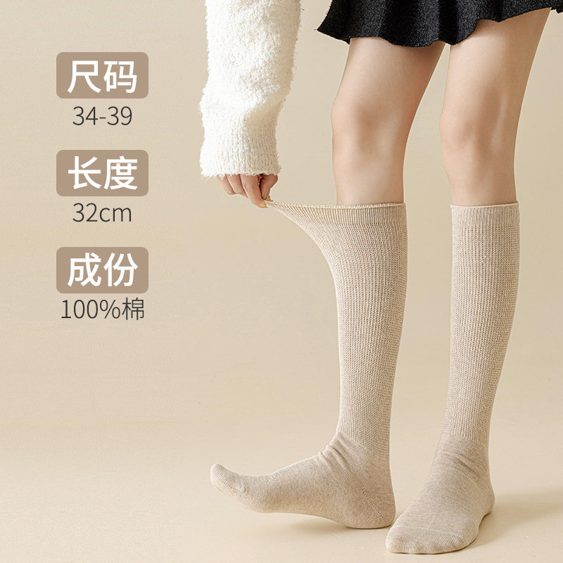 粗腿月子睡眠 32CM小腿袜子女宽松口不勒脚100%纯棉孕妇长筒秋冬季