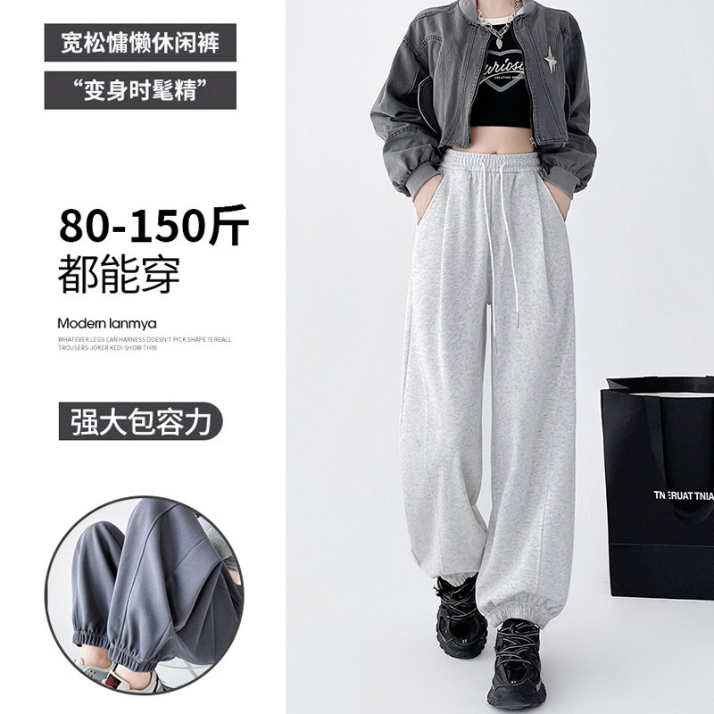 高腰垂感束脚灯笼休闲阔腿加绒美式 运动裤 子女秋冬季 2024新款 卫裤